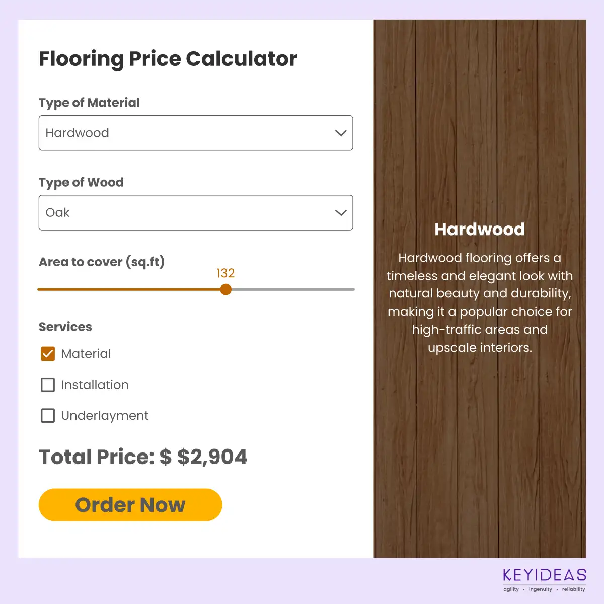 Provide an instant quote calculator for customers to estimate costs based on selected flooring types, room size, and installation preferences.