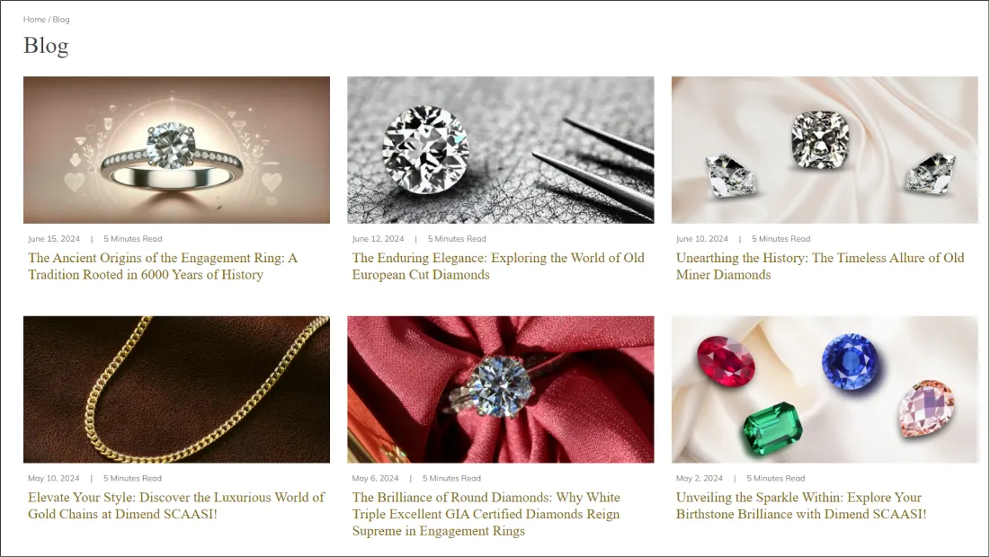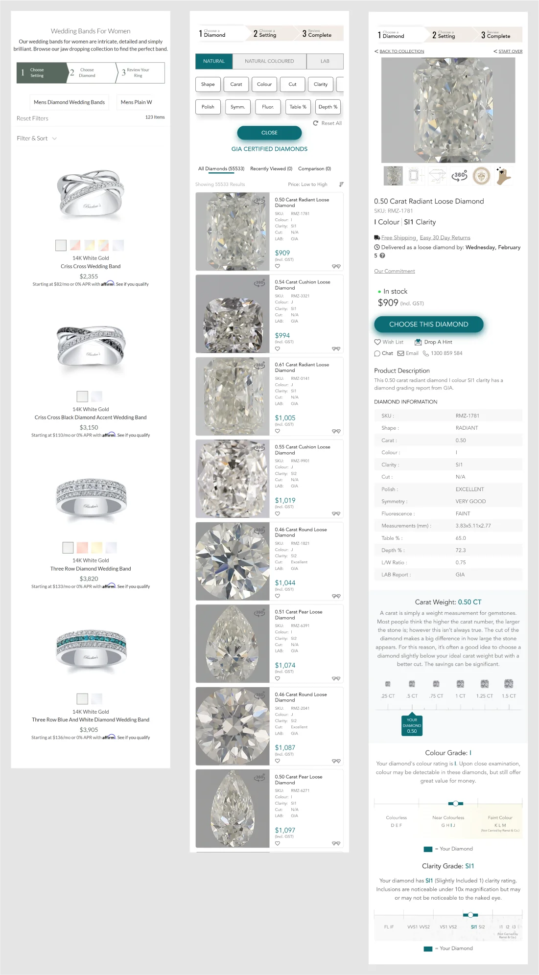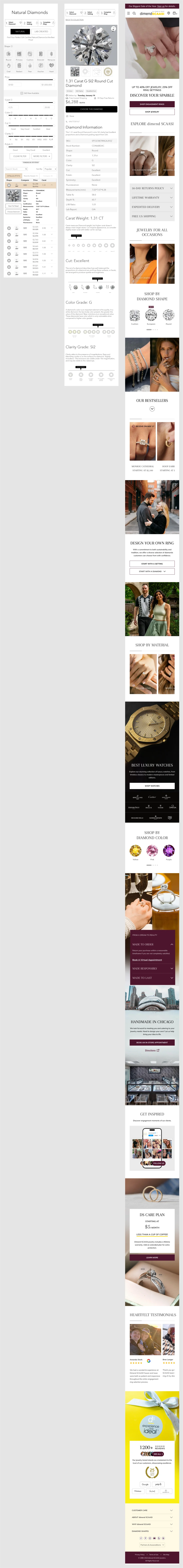 Diamond detail pages feature comprehensive information, including cut, carat, color, clarity, and high-resolution images, allowing customers to make confident choices when selecting their perfect diamond.