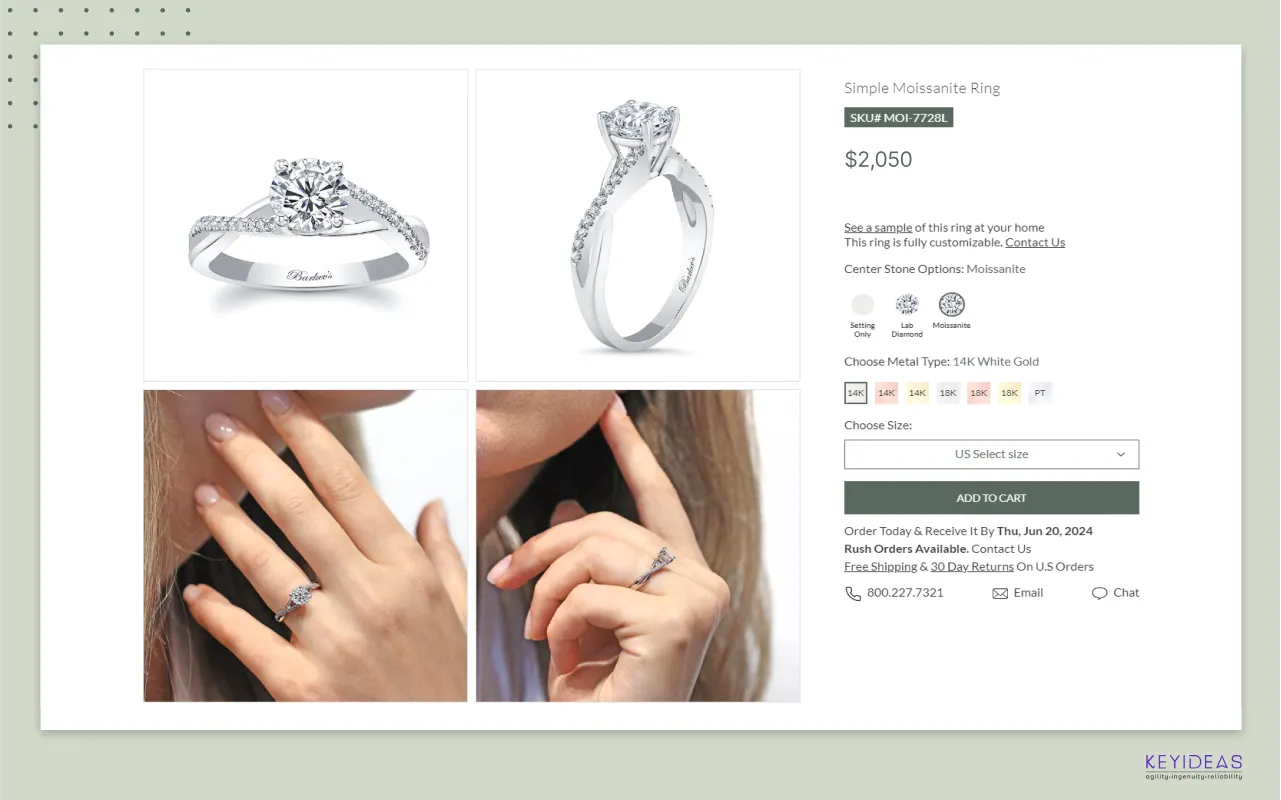 Keyideas built a high-performance platform for our engagement rings using NodeJS and ReactJS. They implemented a Build Your Own Ring module with seamless diamond sourcing from RapNet. Within three months of launch, our online orders increased by 35%, generating an additional $50,000 in revenue. The precision and expertise they brought to the project were unmatched.